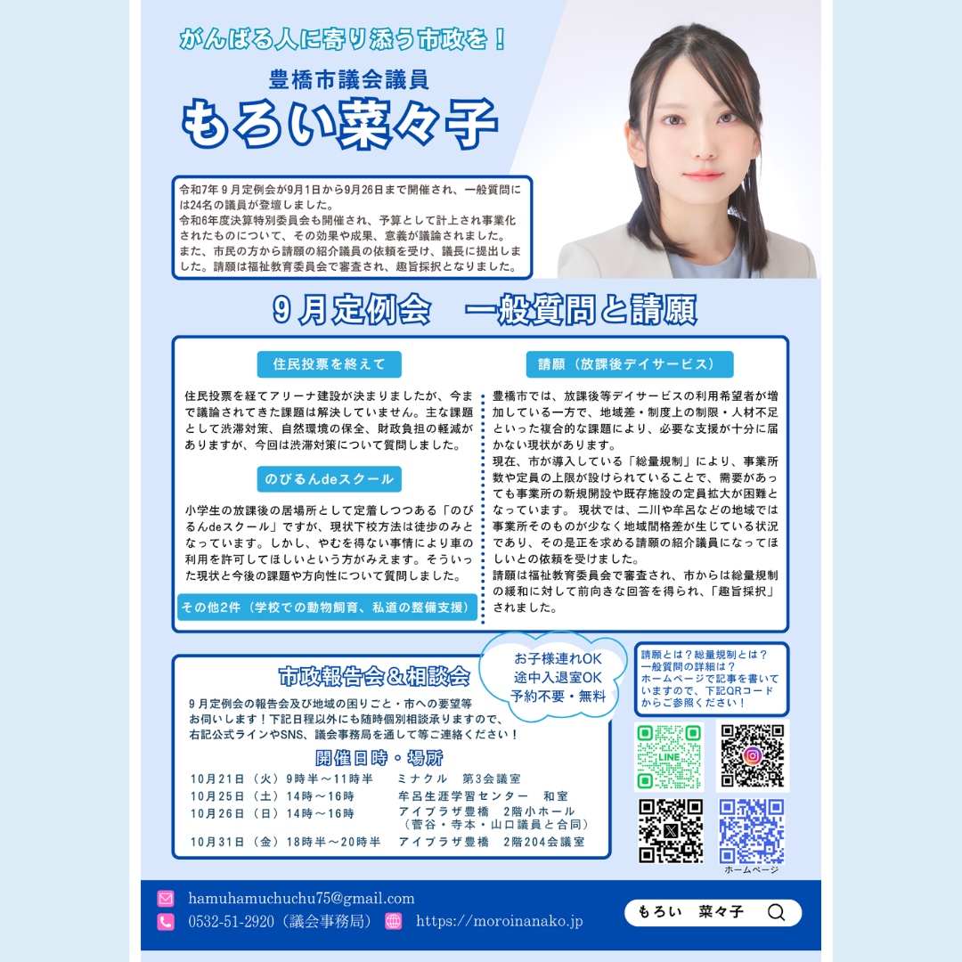 つきましては、10月中に4回の市政報告会を開催予定です😀